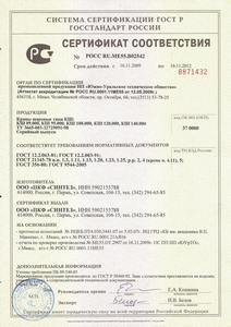 Компанией ООО "ПКФ Синтез" получен СЕРТИФИКАТ СООТВЕТСТВИЯ на Краны шаровые (КШ)