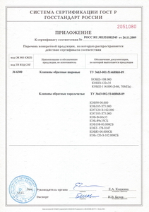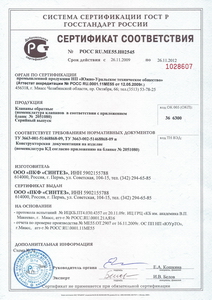 Компанией ООО "ПКФ Синтез" получен СЕРТИФИКАТ СООТВЕТСТВИЯ на Клапаны обратные (КОБТ, КОБШ, КОБ, КОТ, КОШЗ)